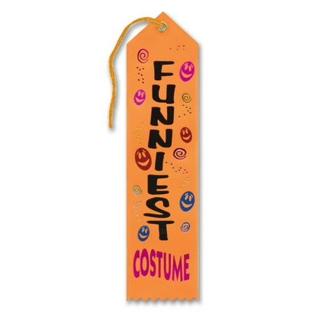 Perfect accessory for your Halloween costume parties Orange award ribbons read Aa -A Funniest Costume" Ribbons can also be used as bookmarks Each comes with an attached tassel Dimensions: 8"H x 2"W Material (s) : fabric Pack includes 6 of the ribbon shown